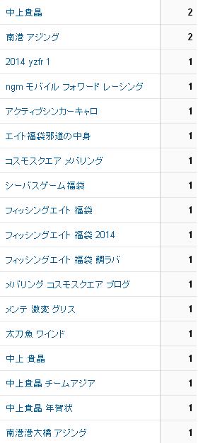 ・・・中上くんのネタがちょっと多かったので、検索に引っかかってますね。あとはフィッシングエイト関連でしょうか。福袋の記事が効いています。ハンドルネームがヤマハのバイク、YZF-R1と被っているので検索に引っかかっているあたり、ちょっと笑ってしまいました。