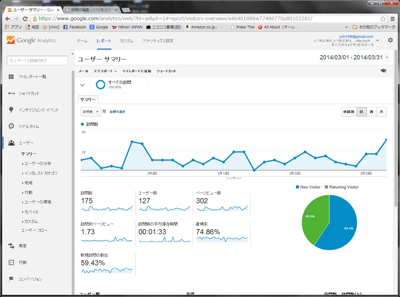 訪問者数は175人。3月は仕事がマジに忙しくて、ほとんど思うように更新できませんでした。