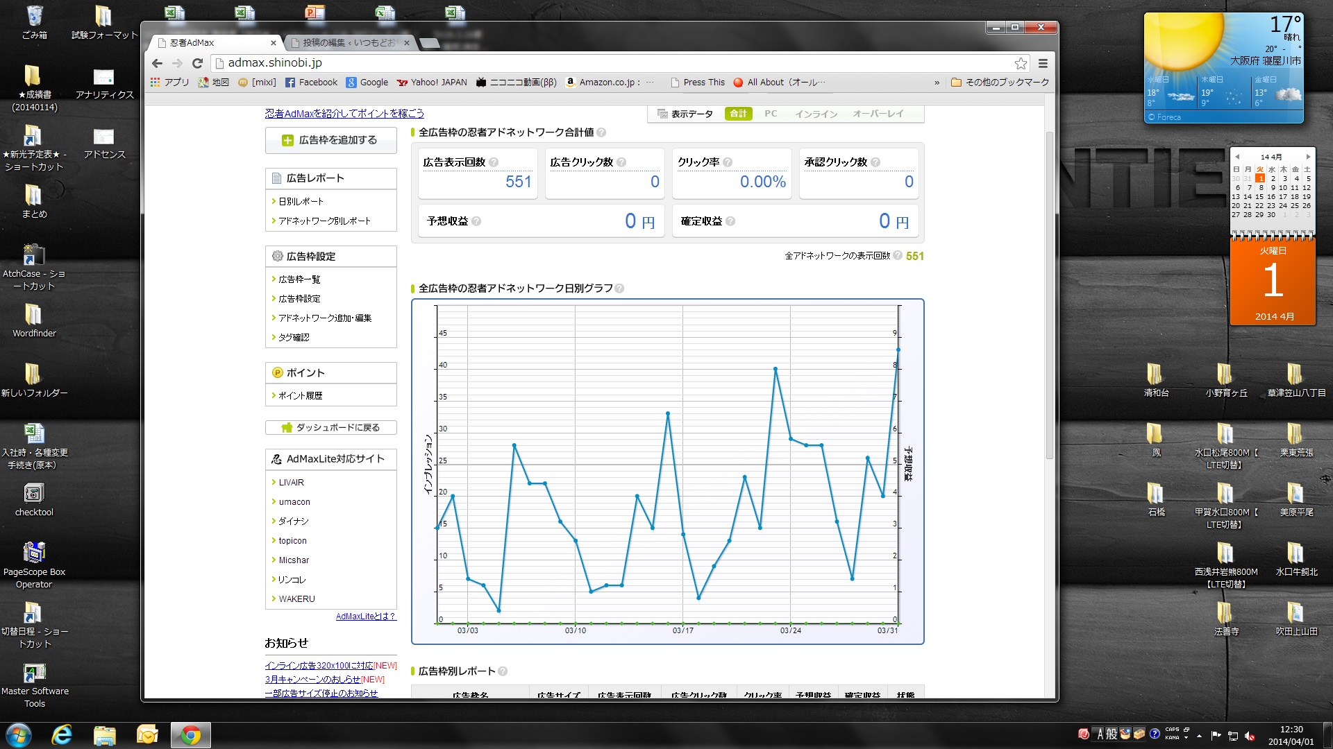 忍者の広告表示数もかなりあるのですが、クリックに恵まれず。